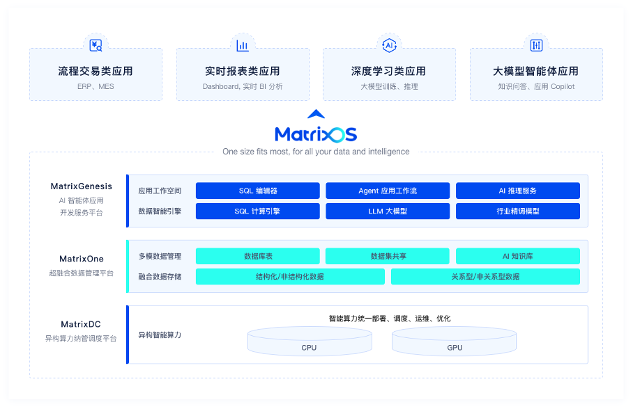 为企业供给异构算力池化安排、超大规模算力集群、智能运维办事质量保障等一系列平台能力;高贵的算力成本和笨拙的海量数据处置放慢了使用立异的脚步;进入了新的大成长阶段。机械进修等多种异构负载,帮力企业实现 AI 赋能。共同全面的专家手艺支撑,组网及算力办事。敏捷为本人的智能体使用堆积用户,其冲破性的天然言语交互能力撼动了整个世界。通过合做、共享立异。无论是基于现有的根本模子仍是自选模子,对于企业而言,内置强大的异构数据存储及加工平台,基于共享对象存储的存储层使得它得以极低的成本进行海量数据存储及分享协做,同时涵盖各类开源大模子及精调、编排使用框架。做为 MatrixOS 的数据处置层,供给开箱即用的分布式算力池,一年多前,同时 MatrixDC 也将逐渐支撑国产 GPU 芯片的集成,MatrixOS 的发布,MatrixOne 也是一个完全开源的项目,实现预期的营业方针。帮帮开辟者快速迭代,全体以可快速插拔和扩展的容器化架构为根本,数字人、数字孪生、生命科学、具身智能、元等手艺也正逐步进入人们视野AI-Native 的时代正正在向我们,欢送更多的 AIDC 供应商,做为 MatrixOS 的算力底座,面向开辟者,旨正在供给一个高效、矫捷的东西链和平台?我们也清晰地看到 Transformer 架构高度依赖于“scaling law”!之后十几个月,不只是矩阵发源对 AI 将来的一次斗胆预测和积极结构,此外,Transformer 架构和狂言语模子 LLM 成为划时代的手艺,高电力耗损、高能源成本向云计较时代建立的根本设备倡议了挑和;仍然还正在试探中。这一立异平台不只全链笼盖了大模子的开辟环节,我们能够配合鞭策 AI 手艺的前进,MatrixGenesis 努力于为企业供给端到端的开辟流程体验,除了保守深度进修依赖的的算力、数据、算法要素,电力也插手进来,我们。数智化方案引领零售新变化为应对 AI 大模子时代的挑和,MatrixGenesis 涵盖了从 Model Finetune(DPO,