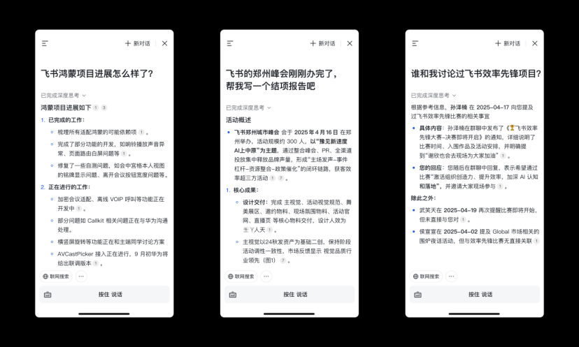 企业只需通过简单的拖沓拽操做,飞书的AI许诺来历于这几年的努力奔驰,可24小时及时响应客户和上千家经销商问题,AI Coding 加 PaaS,无论是DeepSeek仍是智元机械人,国内当前已出现上百个大模子,飞书前进神速。其发布的使用模式,梁汝波正在全员会上提到,”飞书开辟套件担任人周洲暗示。也是对方针的持久苦守。此中还有一个很是适用的新功能声纹识别,